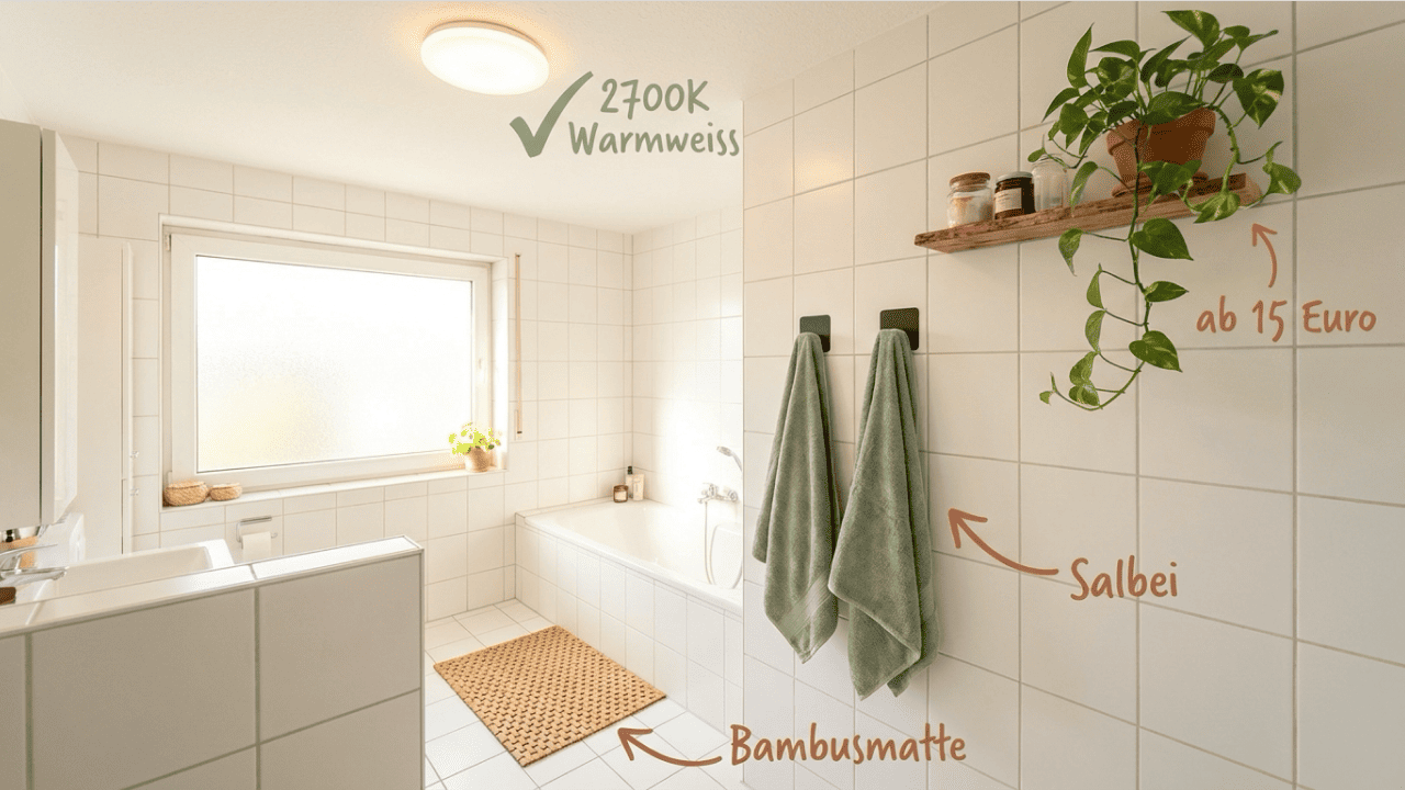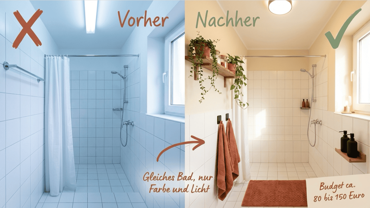 - Budget für ein komplett aufgewertetes Bad: 50 bis 150 Euro. Kein Wochenend-Großprojekt nötig.